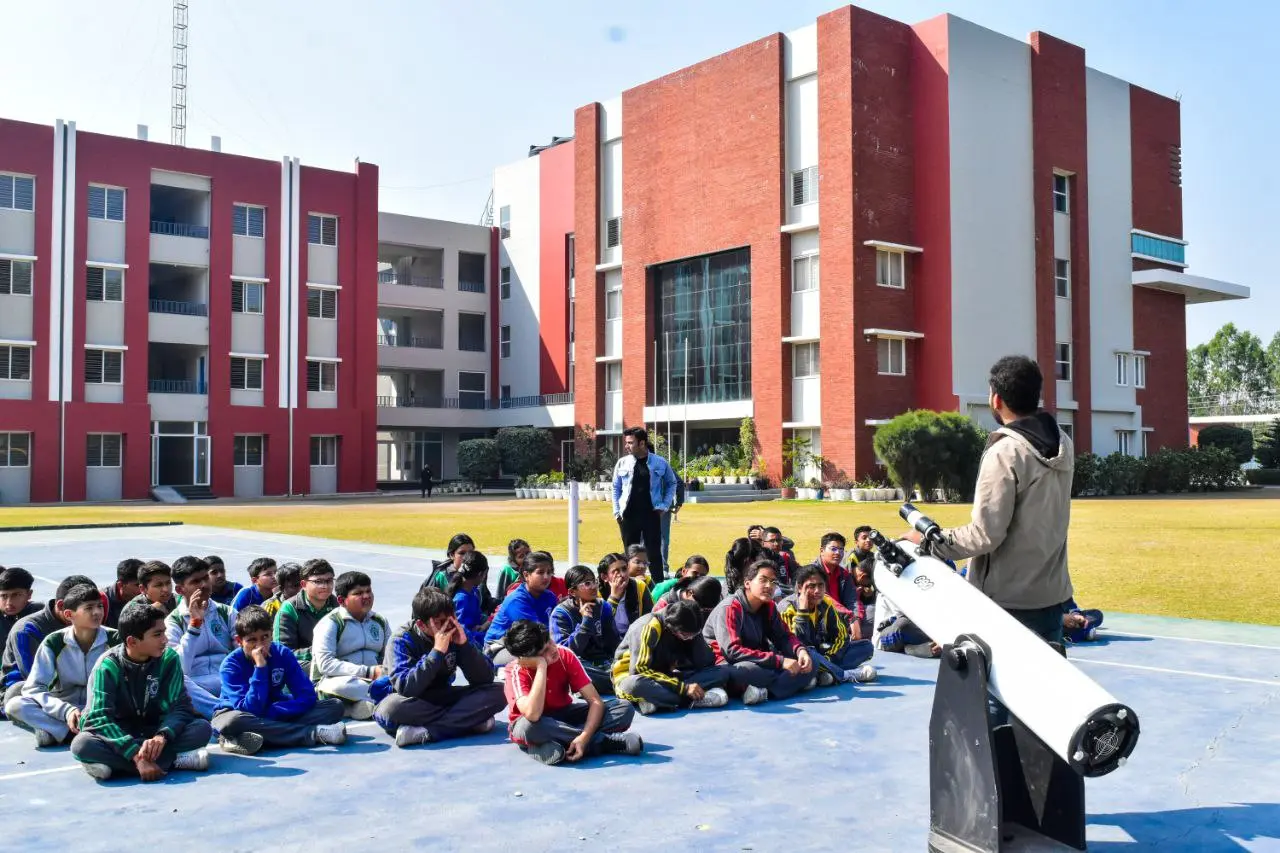 Students learning with telescopes